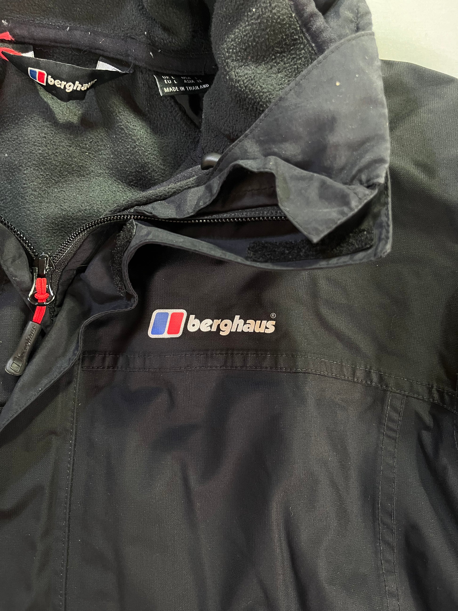 Black Berghaus Coat With Hood - Men's Large - Polyamide, polyester - Very good used condition.